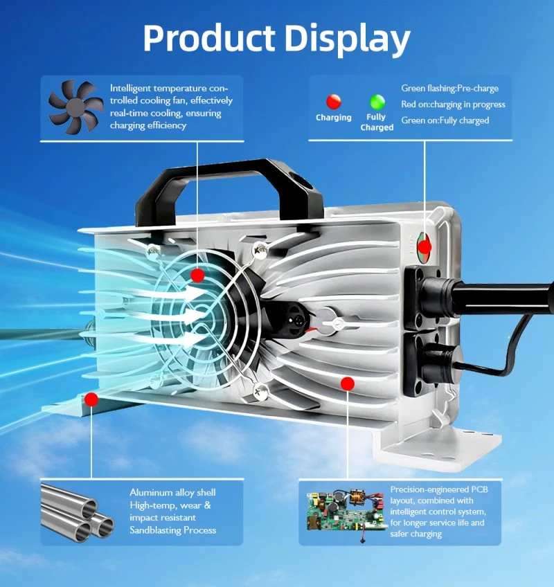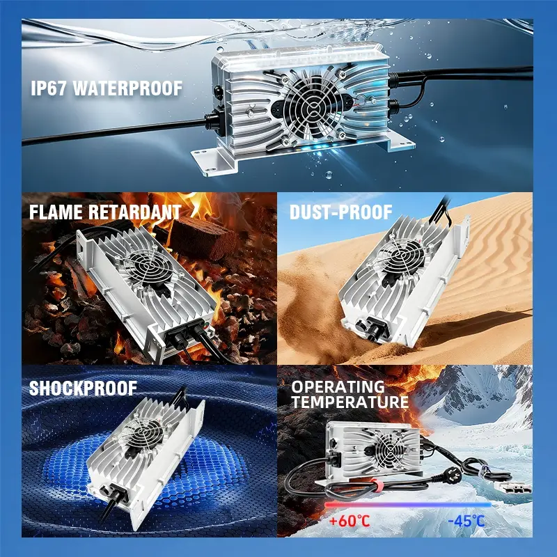 Gloriantes a 1.2kW potentiam aestimavit et 25A output current, hoc 1.2kW velatorium altilium patina plene accusare potest 48V 100Ah altilium in tantum 4 horis, quod est 20% velocior quam ordinariae 1000W phialas. Summus circuitus efficientia designans industriam damnum ad minus quam 10% minuit, industriam salvificam dum celeri impetu currit, aptam facit ad missiones quae excolendae velox altilium requirunt.