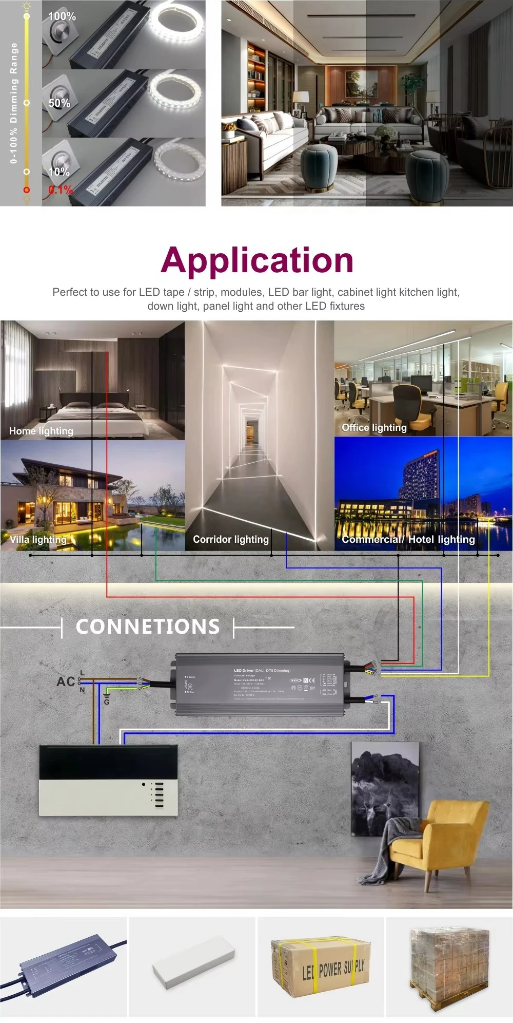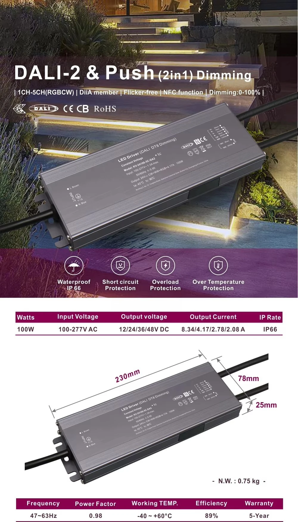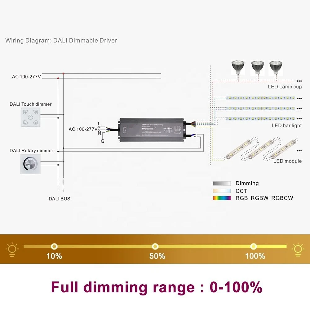 Starwell, opificem in Sinis exactoris professio DUCTUS, nostrum hoc 100W DALI Constans Voltage CCT Dimming Coegi DALI-2 certificatum est, ac definitum offerens digitales extenuantes ab 0.1% ad 100% pro inconsutilis potestate lucis. Custodia essentialia continet contra brevem ambitum, oneris ac nimis temperatum, cum passiva refrigeratione per liberum aerem convectum.