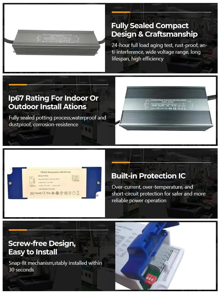 Praecisa Constans Current · Diuturna Durabilitas: STARWELL constans current triac dimmabilis DUCTUS agitator altam praecisionem adsiduam monetam adhibet. Error currentis output est ≤±3%, output vena stabilis est ad 1200mA, et vibratio profunditas est <5%, sic difficultates micantium ac levium attenuationis tollendo. Extendere servitium vitae DUCTUS adfixae adfixa plus quam XXX%, eiusque continua operans vitam attingere potest ad 50.000 horas, eoque signanter minuendo impensas substitutionis et sustentationis.