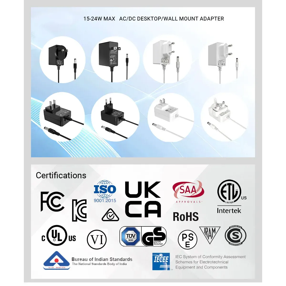 24W potestas adaptor series strictorum internationalium signa dignatur et certificationes globales gloriatur, in iis CE/FCC/UL/RCM/SAA/UKCE/KC/BIS/PSE libellum, salutem et obsequium environmental praestans. Eius consilium obturaculum Europaeum permittit ut nexus secure, facile in variis fundis utatur.