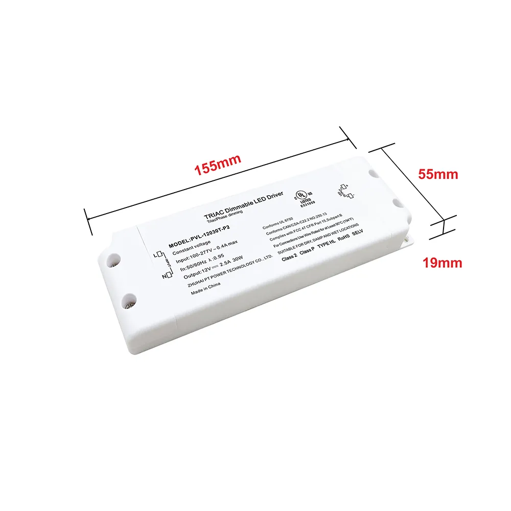 Princeps Efficiency & Energy salutaris · Fortis Versatility: Potentia conversionis efficientia tam alta est quam 92% vel magis, virtus consummatio 0.3W standby, congressio nationalis primae classis industria efficientia signa; Lata intentione initus in AC100-277V, compatible cum global potestate municipali; Magnitudo corporis Constantini Voltage DUCTUS agitatoris 85×55×30mm est, tribus modis institutionum, renovationem domum, missionem commercialem et machinationem.