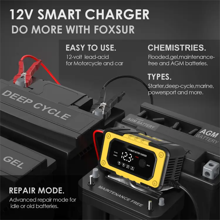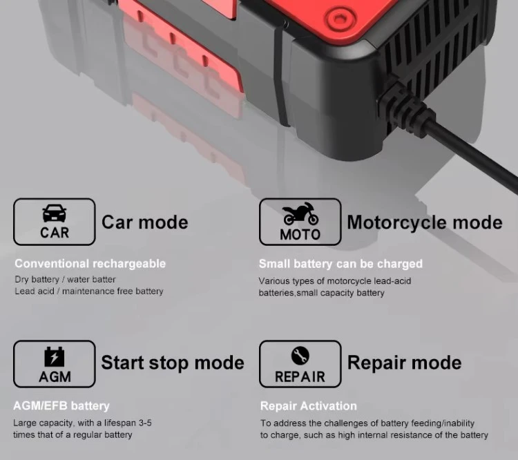 Starwell, fabricatrix machina et fabrica e Sinis machinalis professionalis intelligens, 12V 6A Reparatio Automatic plena Pugna discoperiens, ora fabrica destinata ad occurrendas necessitates variarum acidorum plumbi gravidarum exhibet. Utrum gravida autocineta, motorcycles, ATVs, gramina obtrectatores, vel etiam lintres arguere debes, haec patina essentiale instrumentum ad vehicula nonumy tuas servandas est. Cum suis provectis technologiam et facultates multifunctionales, haec disco plus quam iustam solutionem typicam offert.