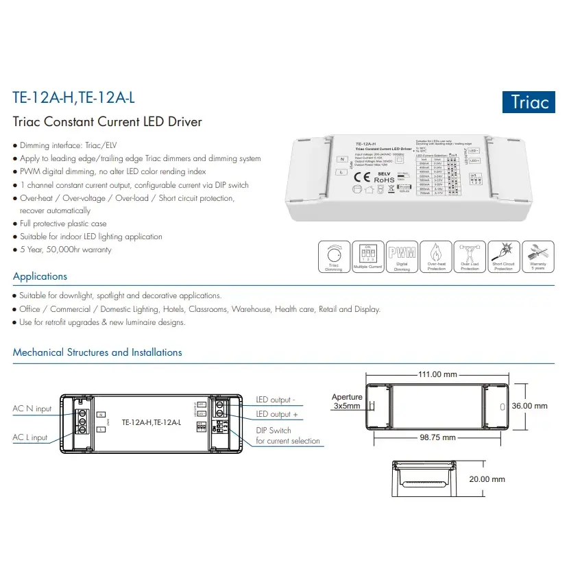 Momentum 12W Constant Current Triac Dimmable DUXERIT Driver