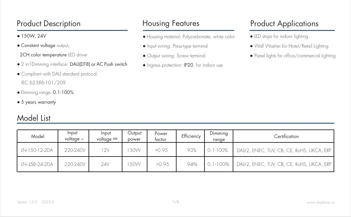 150W 24V DALI CCT Constant Voltage LED Driver |