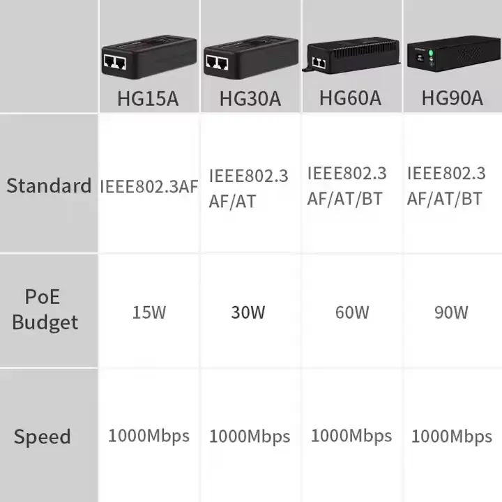 Injector hoc escriticum PoE cum componentibus industrialibus constructum stabilitatem praestat per funem distantiarum usque ad 100 metra. Magnopere deminutio multiplicitatis et institutionis impensas pro domibus, officiis, ac parvis ad medias inceptis minuit. Ut certa 15W IEEE 802.3af PoE adaptor, stabilis potentiae copiam componit, velocitatem gigabit, et fortes effectus securitatis ut obviam retis professionalibus instruere postulat.