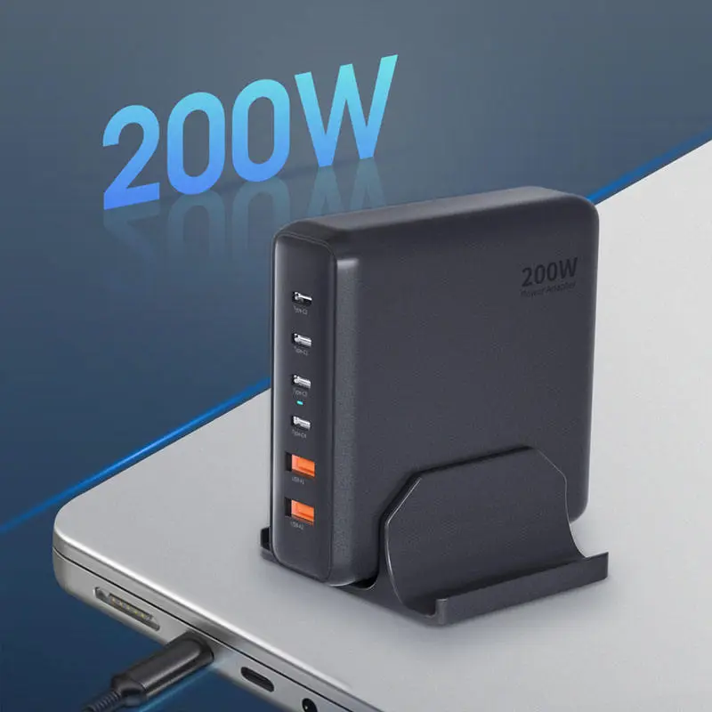GAN 200W Fastigium patinae 4 USB-C + 2 USB-A 200W PD Charger
