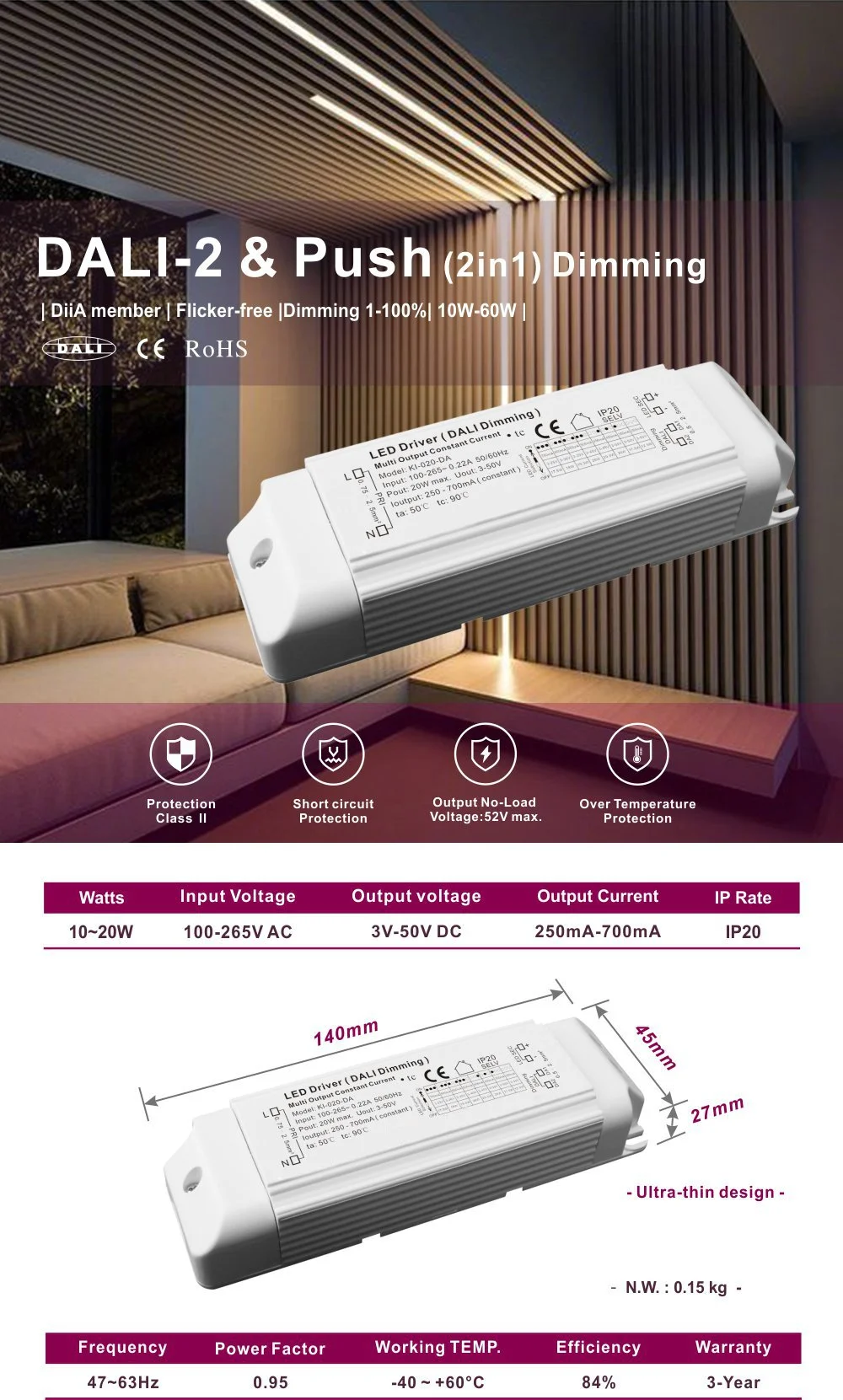 In fine, haec est 20W constans vena DALI obscurans DUCTUS agitator cum muneribus comprehensivis et certa operatione. Utrum opus est retis accensis intelligentes DALI complexum aedificare, an aurigam stabilem et facilem ad usum dimmabilem quaerunt, hoc 20W DALI obscuratio assidue currentis DUXERIT agitator egregiam electionem tibi esse potest, ut omnibus lampadibus ductus omnem potentiam callidi efficientem et diuturnam praebeat.