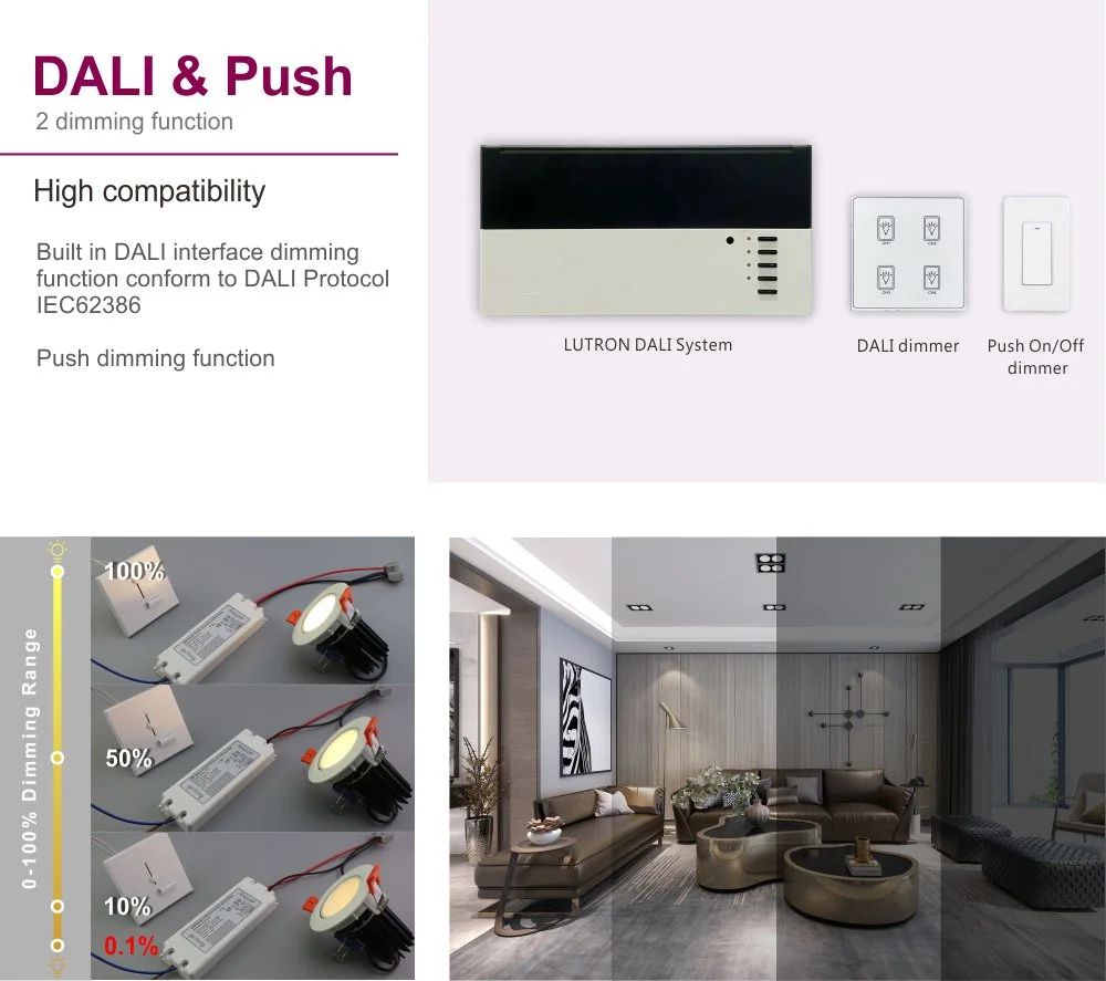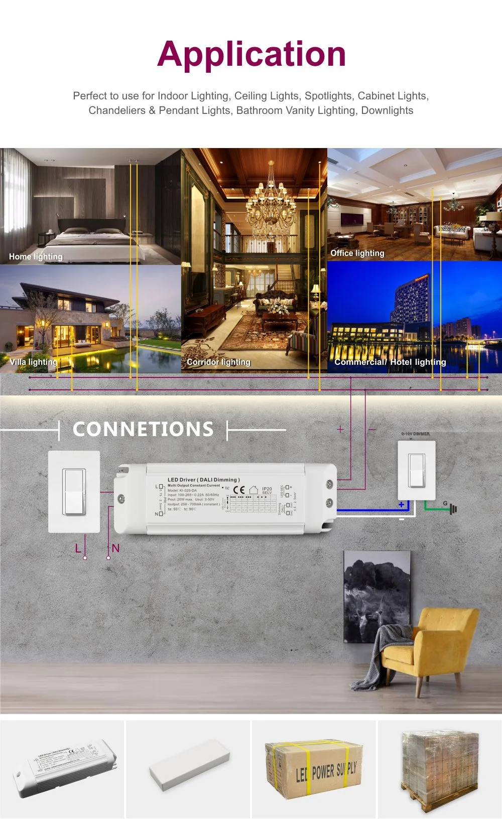 Consilium pacti eius institutionem et integrationem faciliorem reddit, comprehensivam overvoltationem, nimium temperaturas et breves circuitus tutelam praebet. Productum est aptum locis ut musea, officia, hotels, quae intelligentes scaenam substructum ad potestatem venientem requirunt, et est specimen exactoris solutionis ad consequendam industriam conservationem efficientis ac flexibilem lucem ambitus administrandi.