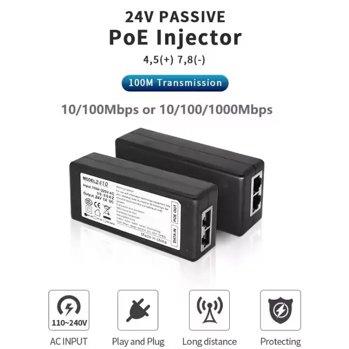 Optima qualitas 24W escritorio POE injectoris passivi generis oblatum est a fabricante Sinarum Starwell. Cum stabilis 24W output et subsidium tam 24V 1A quam 48V 0.5A configurationum, potentia haec passiva adaptator late in APs wireless, pontes velit, systemata securitatis CCTV et ad punctum transmissionis instrumenti. Desktop consilium compactum et obturaculum-ac-ludere functionality facilem institutionem in variis ambitibus network indagandis.