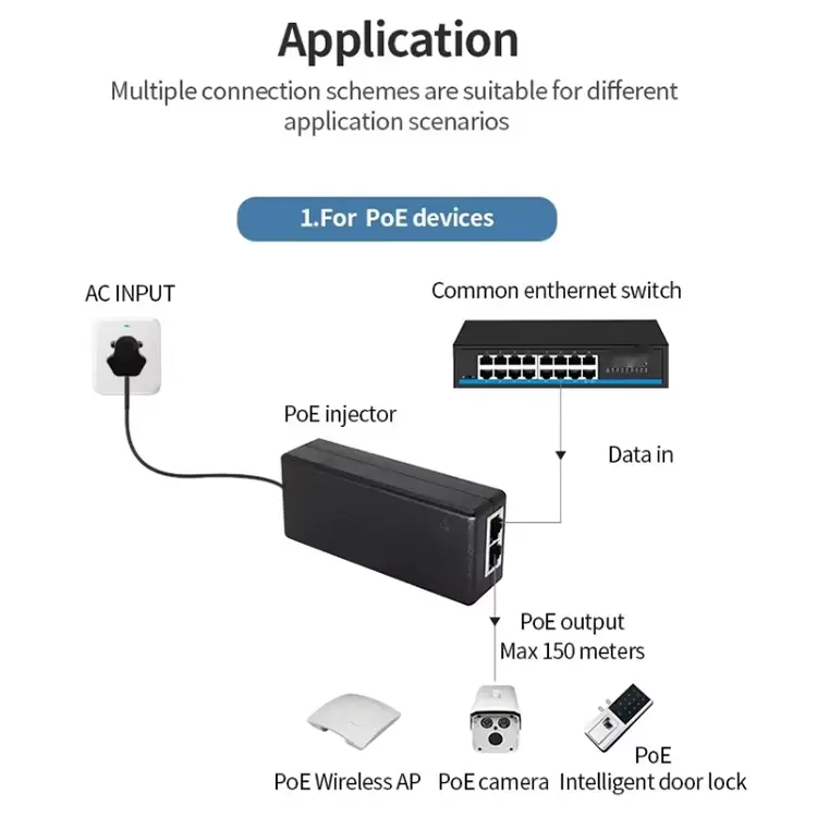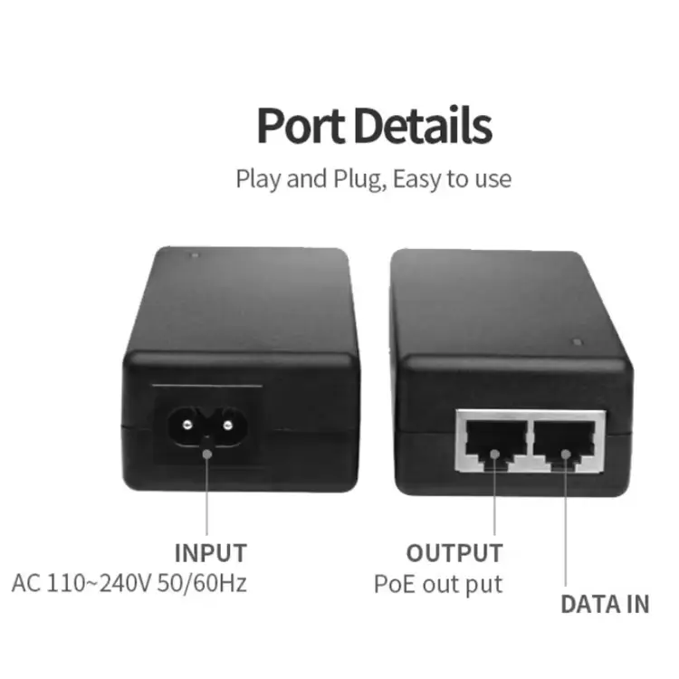 Hoc injector passivum PoE potestatem directam transmissionis sine handshake protocollo utitur, systema reducit complexionem et compatibilitatem meliori cum instrumento network specifica.