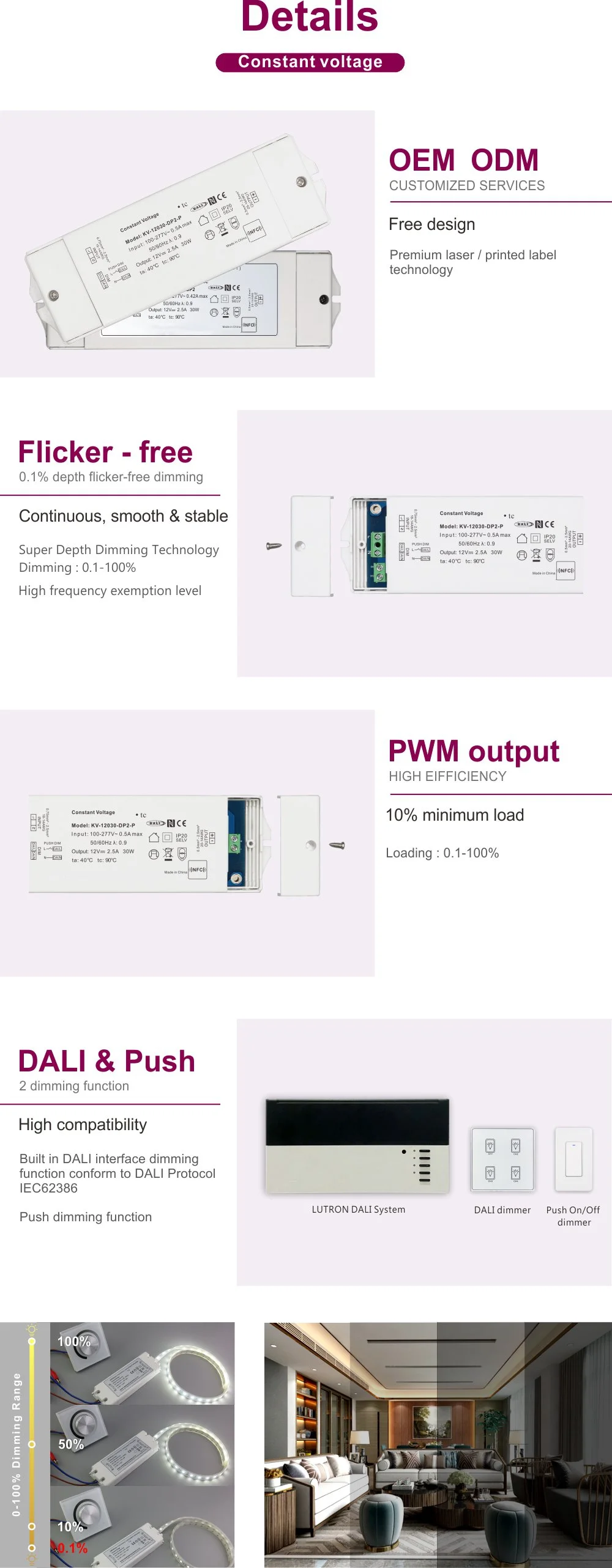 In 36V assidua intentione 30W DALI obscuro DUCTUS agitator, cum suo stabili constanti intentione evoluta, potens moderatio capacitatis DALI protocolli, summus qualitas vibrantium liberorum levis effectus, ampla intentioni aptabilitas, et certa salus certificationis, potens et intellegens "cor" variis applicationibus illustrandis praebet.