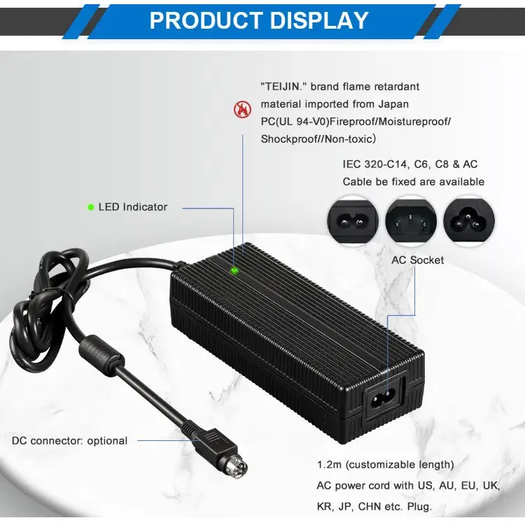 Global Compatibility & Design Flexible: Constructa cum universali AC initus amplitudine 100-240VAC, 50/60Hz, haec dextra sustinet usum totius mundi. Plures optiones AC limbum praebet (IEC320-C14, C6, C8) et venit cum 1.2M funiculi potentiae quae cum US, AU, EU, UK, KR, JP, CHN ceterisque regionalibus pluga praebet. Habitatio a PC materia comprobata construitur, ut diuturnitatem et securitatem sub variis condicionibus operantis efficiat.