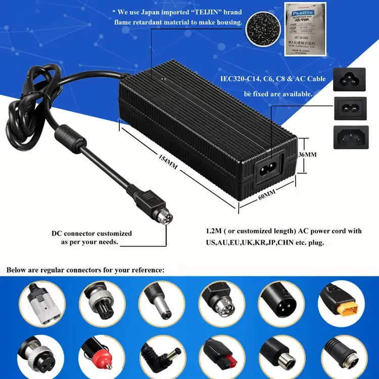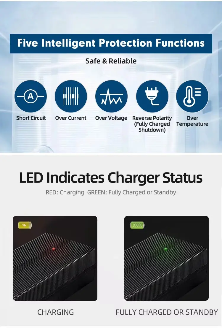 Intelligentibus tres scenas increpans (CC/CV/Trickle), optimam pugna salutem efficit, impediendo onerando, aestuando, et circuitibus brevibus. Aluminium stannum habitationi durabile optimum calorem dissipationem praebet ad usum tutum, diuturnum. Facere vexillum 3-prong XLR iungo, haec dextra praebet certas et efficaces partus potentias, ut specimen substitutionis vel upgrade pro mobilitate electricis cogitationibus tuis.