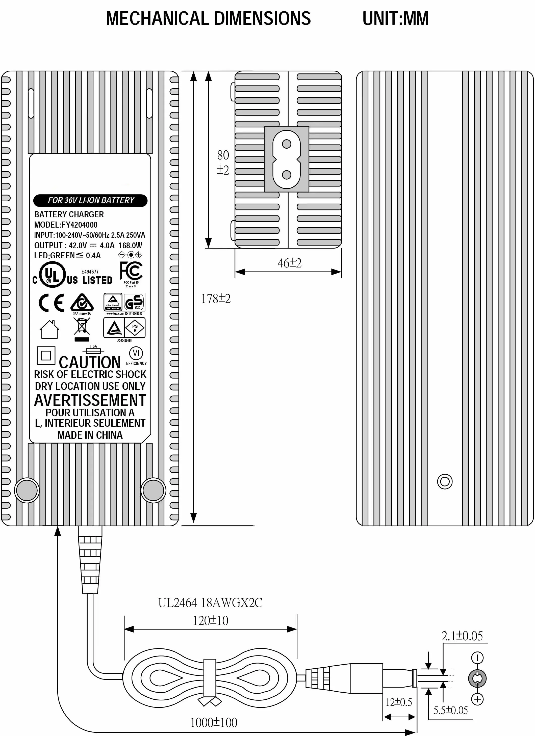Comprehensive Praesidium & certificaciones: Salus precipua est. In 42V 4A Scooter Pugna Patina features robustae machinae tutelae inclusae breves ambitus, overvoltatio, overtemperantia, praesidium onerare, cum HIPOT probatione usque ad 4200V pro salute addita insulationis. Efficaciter operatur ad >89% efficientiam et amplum certificationum globalium indicem fert: UL, CUL, GS, CE, BS, SAA, KC, PSE, CB, FCC, EMC, ROHS et SPATIUM, signis salutiferis ut UL60950, IEC60950 et IEC60335.