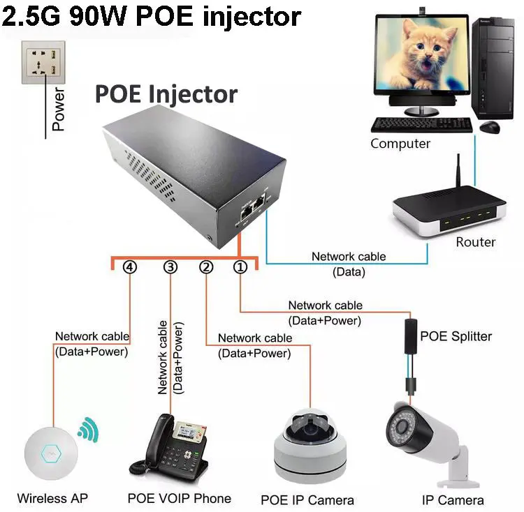 Factory Starwell 48V 90W PoE Injector PoE adaptor, summus perficientur solutio ad certas opes et datas traditiones super Ethernet destinata. IEEE802.3af/at/bt PoE++ signis plene obsecundans, haec injector stabilis 2.5G data transmissionis celeritatem praebet et cogitationes altas postulare potest sicut IP camerae, APs wireless, virgas retis et IP terminales. Pactum suum, obturaculum et-ludere consilium simplificat institutionem in domo, officio, et retiacula industrialia, praestans PoE potentia tuta et efficax copia cum minimis paroeciis.