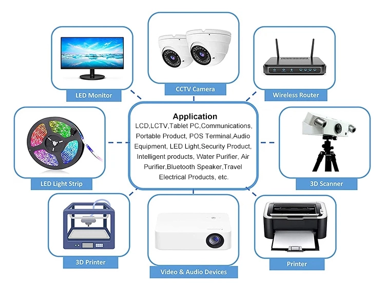 * Plures unitates pro serie 48W: 5V/9V/12V/15V/19V/24V/36V/48V praesto * Salus: OCP/OVP/OTP, SCP, latae sententiae cultro abscise, supra intentionem abscise, latae scelerisque abscissae. * Lata compatibilities: LED Strip Lumina, 3D Printer, ham radio transceiver, CCTV cameras, currus subwoofer amp, audio amplificator, wireless iter, ADSL Cats, Humidifier, HUB, Keyboard, BT Orator, Monitor, Webcam, DVR, NVR, audio/ video potentiae copiam