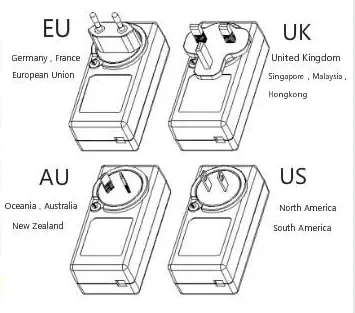 AC plug Type | US/EU/UK/AU vel | |