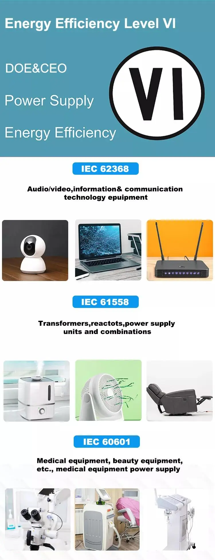 IEC62368 pro electronicis Consumer, IEC60335 pro patina altilium, IEC60601 pro instrumento medici gradus, IEC61558 pro applicatione domus, IEC61347 ad illuminationem ducendam. |