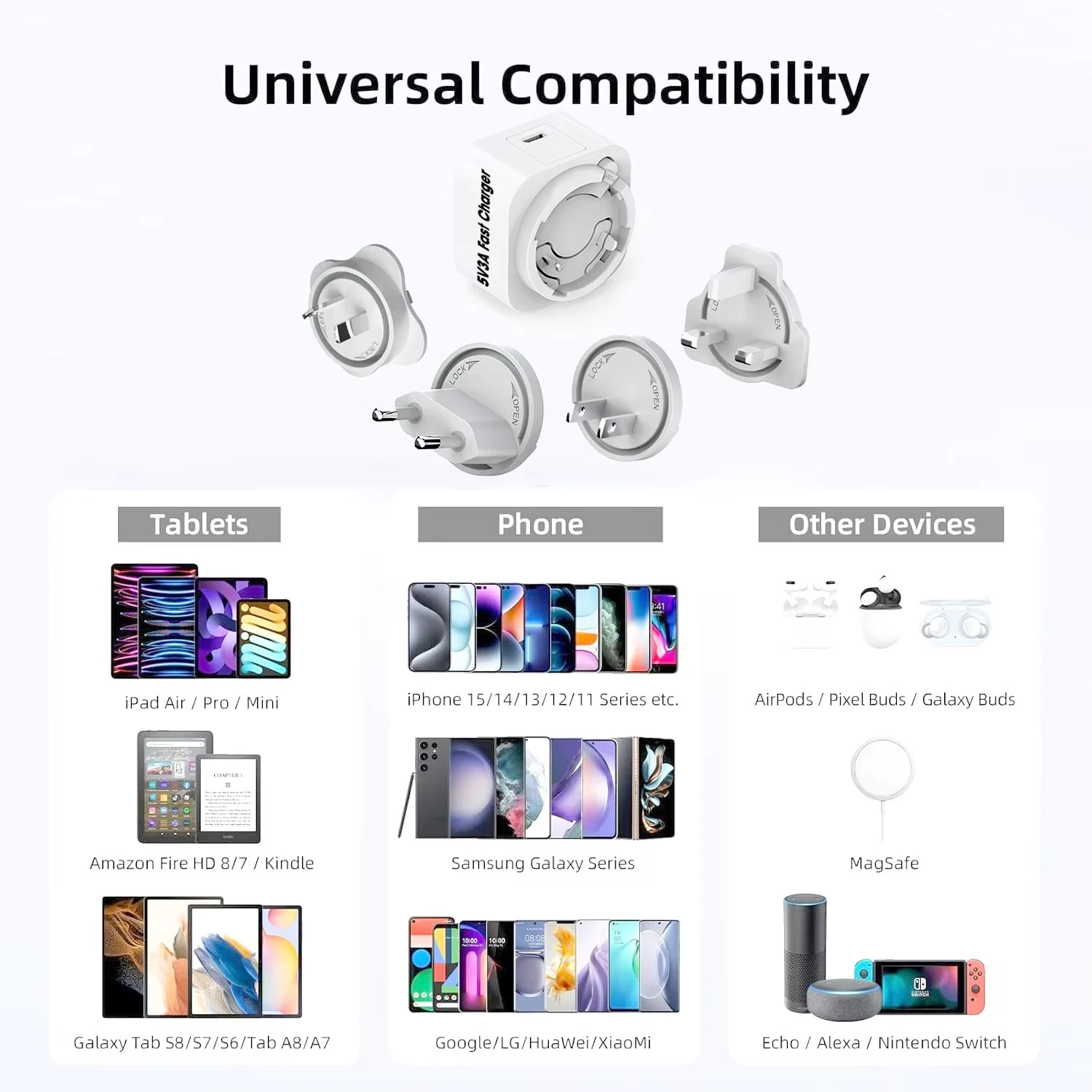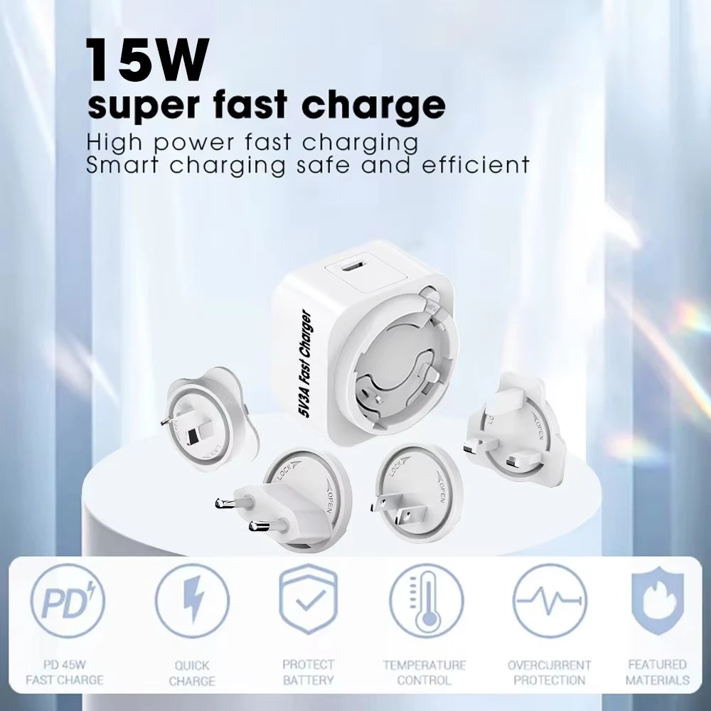 Integra copia plugarum dissolubilium (US/EU/UK/AU/KR/CN) inconsutilem usum in supra 150 terris efficit - perfectam ad internationalem peregrinationem et quotidianum usum.