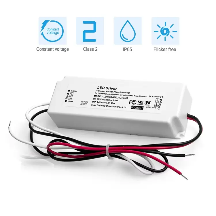 75W Constans Voltage DUXERIT Coegi cum TRIAC Dimming • Compatibilitas: Opera cum vexillum plurimum TRIAC/incandenti-styli dimmers. • Stabilis Output: Constans intentione (CV) pro 12V vel 24V systematibus ductus. • Imperium lenis: dat spatium plenae, vibratio-liberum obscuratio. • Tutela robusta: in praesidiis contra vitia electrica aedificata. • Usus Typicus: Perfecta pro obscuratione ligamenta, modulorum, et lumina vestiendi.