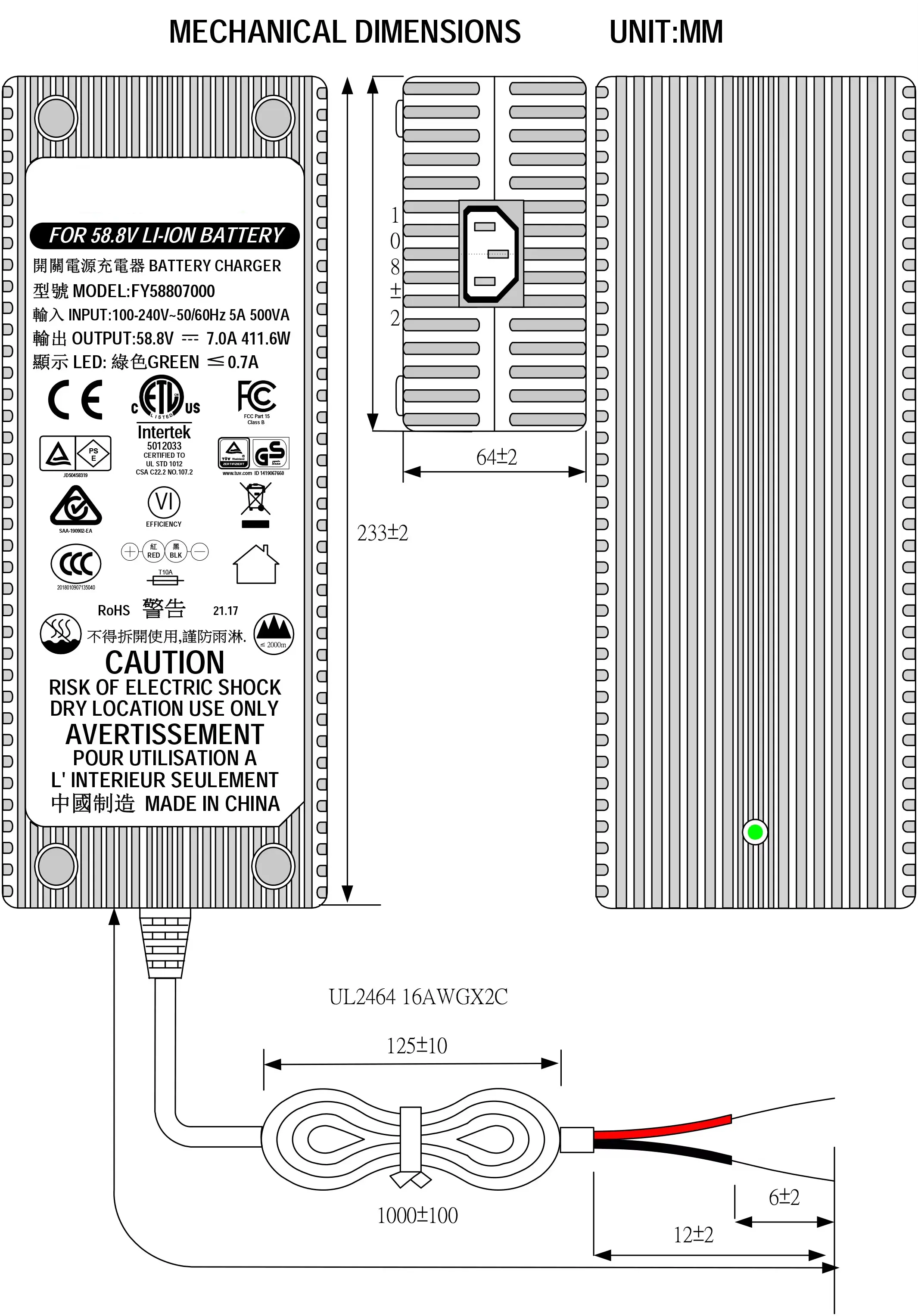 UL, CUL, GS, CE, BS, SAA, KC, PSE, CB, FCC, EMC, ROHS, SPATIUM |