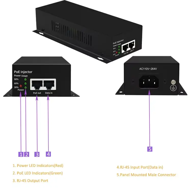 Potentia Budget: Perficite machinam tuam potentem (PD) ≤ 90W requirit. Injector solum suppeditabit potestatem machinae conciliandae.