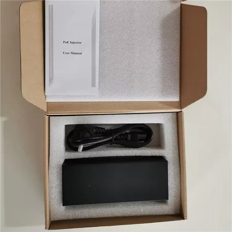 1. 90W Gigabit POE injector:1set 2. Manual:1PCS 3. certificatorium conformitatis, warantiam card:1PCS |