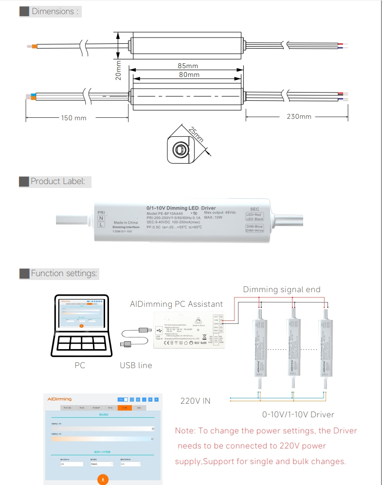 1. Antequam accessus signum obscurationis, placet confirmare utrum imperium signum sit 0-10V an 1-10V, et signum et occasus current per AIDimming PC et software. Potentia copia mutandi parametri coniungi debet cum copia 220V potentia quae in batches mutari potest.