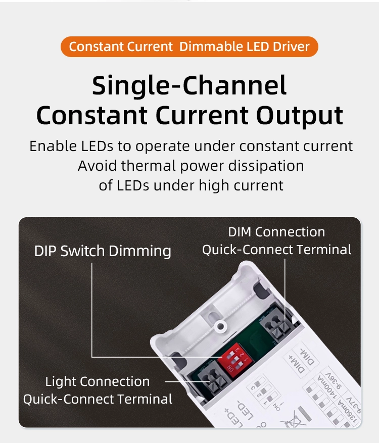 Modi dual Dimming: Constans current agitator obscurans DUCTUS sustinet 0-10V/1-10V signum input duplicatum obscurationis. Iaculum obscurare 0-100% est, cum linearitate ≥95% obscurare. Potest consequi inconsutilem et lenis transitus a caliginoso ad plenam splendorem sine ullo jittere et pigritia obscuratione. Compatitur cum variis systematibus obscurationis intelligentibus et potest occurrere necessitatibus variis missionibus illustrandis.