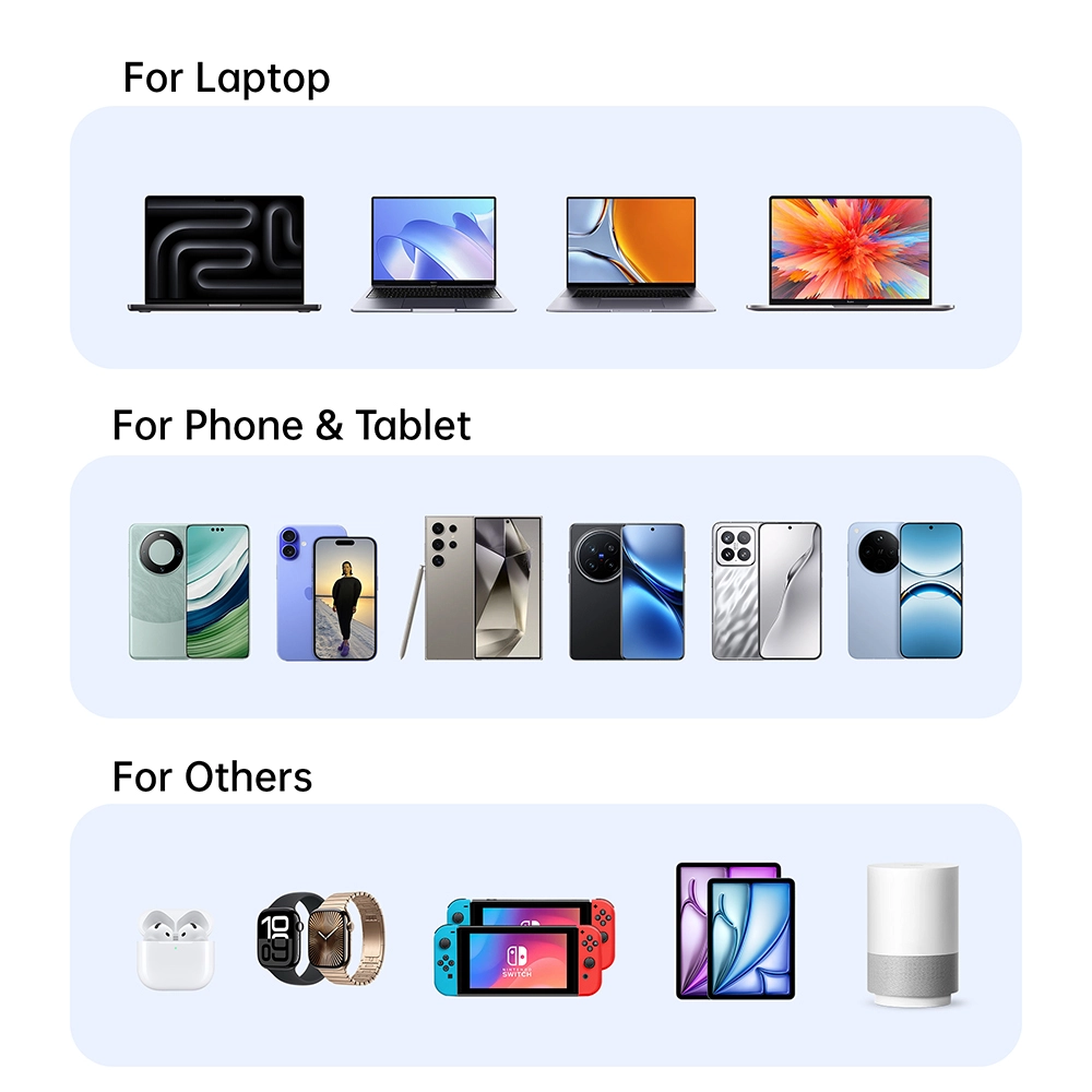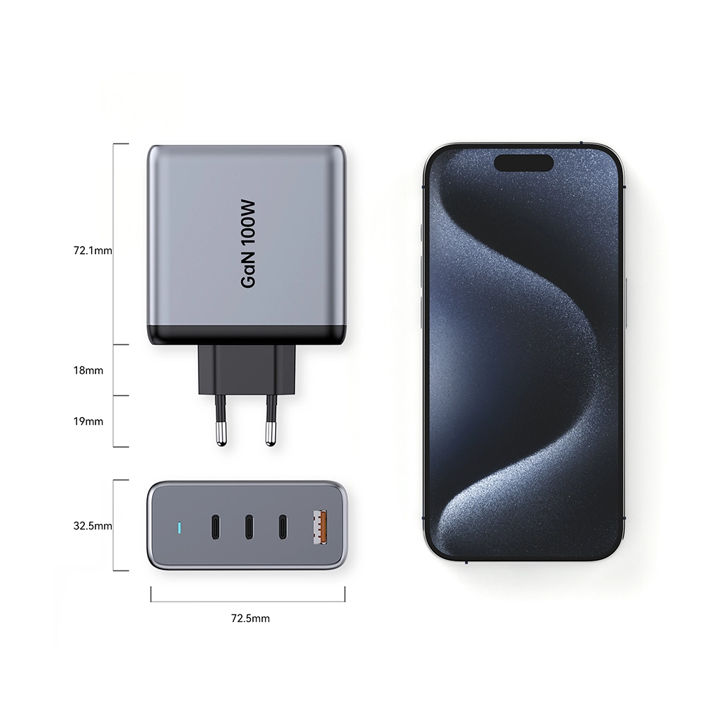 GAN 100W Fast Charger pro laptop CE Praecipe multiplices cogitationes cito eodem tempore ut opera tua luculentam servet et constituat. Starwell durabile GaN 100W patina velocissima tribus USB-C portibus instructa et unus USB-A portus, eam potestatem usque ad quattuor machinis simul permittens. Sive ad rem sive ad usum domus, negotia facile tractare potest. Ex laptop tuo, telephonio mobile, tabula ad smart vigiliam, omnia simul plene onerari possunt, tandem tempus nervus occupationis finientes. Hoc efficit simplicitatem et magna efficacia ad mensam tuam.