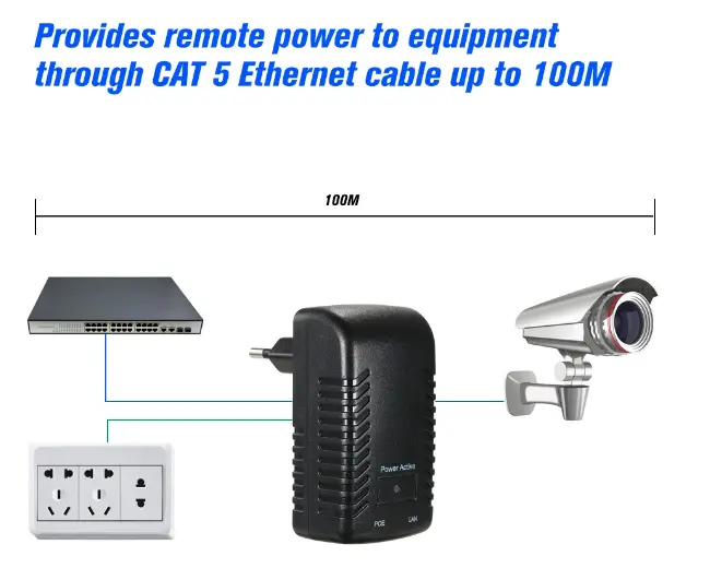 Machinator ad 48V IEEE 802.3af vexillum, hic Instructor Wall-montis Non-Aethernet adaptor 15W potentiae output stabilis tradit, plenissime supportans cameras IP potentissimas POE, quae 15-25W typice requirunt (exclusis exemplaribus summus potentiae PTZ). Etiam fideliter operatur cum IP phones et aliis machinis obsequentibus cum signis 802.3af vel 802.3at POE, late compatibilitas offerens ultra custodias propositas. Injector Plug POE ad diuturnum operationem aedificavit potentiam et notitia transmissionis super unum funem Aernet, secans institutionem temporis et sumptus materiales pro residentialibus, commercialibus, et securitatis inceptis retis.