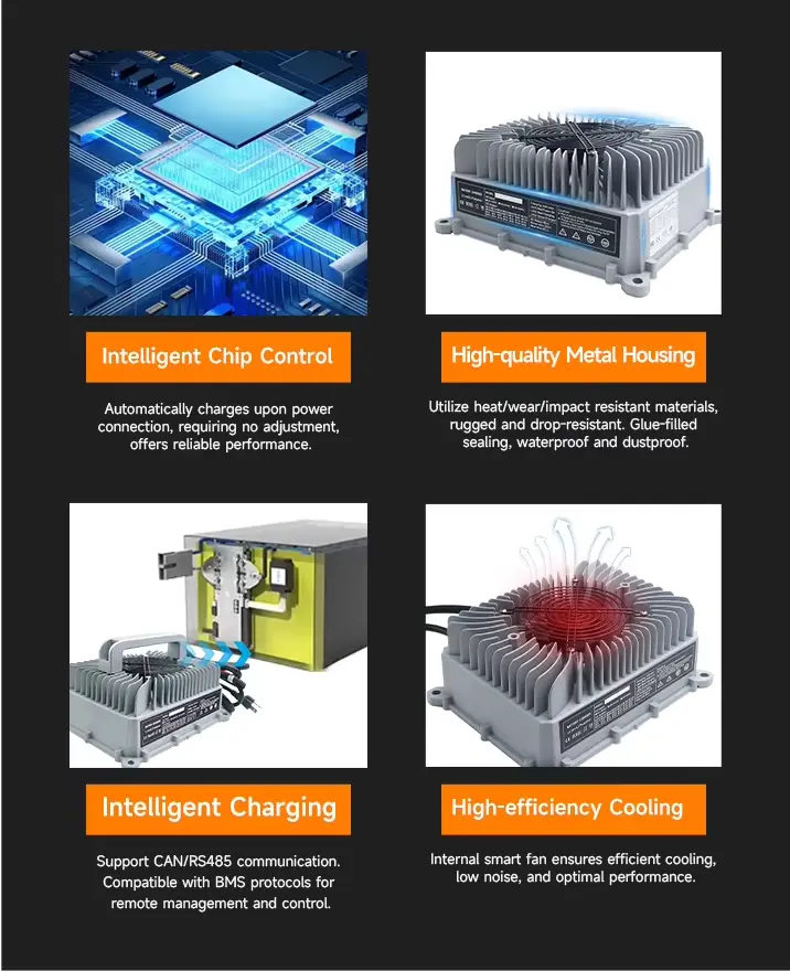 · Protocollum communicationis OBC integrae permittit intellegentes administrationem incurrens, gravidas protegens ab onerando, aestuantia, et brevibus circuitibus.