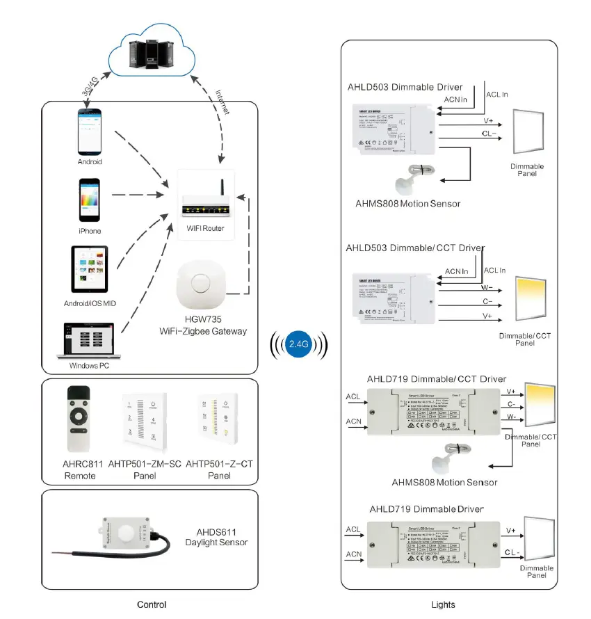 Agitator intra reticulum Zigbee reticulum operatur et cum porta Zigbee coniungit ut dolor accensis functiones ut scheduling, scaenae imperium, coetus imperium, et automationem coniungat. Hoc genus exactoris DUXERIT vulgo adhibetur in callidi domestici systematis accendi, mercatorum accensium institutionum, ac culturae ambitus intelligens fabricam moderandi.