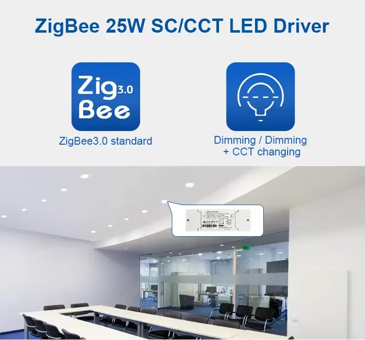 A Tuya Zigbee Wireless Control 350mA CCT Dimmable DUXERIT Coegi constans est vena DUXERIT potentia coegi designatus est ad moderandum tunable album LED accendendum. Zigbee 3.0 wireless protocollum integrat, utentes utentes splendorem et colorem temperaturae componant per quis felis, tabellam, vocem adiutorem.